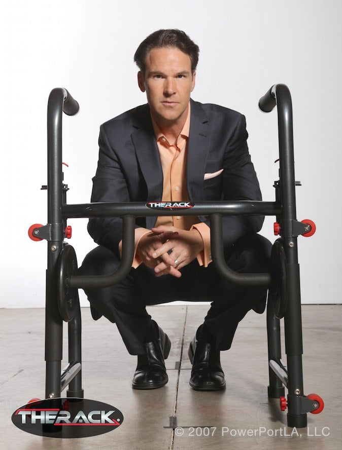 THERACK® was originally sold in sports equipment chain stores from 1998-2002. It was licensed under two patents from MOTIV Industries Inc., an entity founded by Travis Burrell and then business partner, Robert Zuckerman. Burrell eventually filed a third patent for his “multi-level, portable and versatile exercise apparatus” to assume full control of his invention and in 2007 began manufacturing, distributing and marketing THERACK® via his new label, PowerPortLA, LLC. Burrell and THERACK® were featured in IRON MAN, FitnessRx, Exercise, Competitor magazines and featured in Better Bodies segment on My13 news. Today THERACK® is available through THERACK® Workout website, and domestic and international retail outlets. It’s been seen now on ESPN, Discovery, History, Versus, Universal Sports and Spike networks.